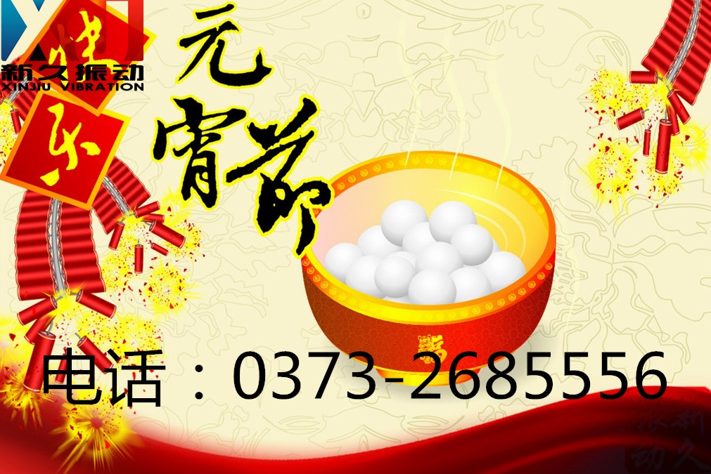 元宵到了,新鄉(xiāng)市新久振動機械有限公司全體員工愿你:一家團團圓圓和和睦睦,一年開開心心快快樂樂,一世平平安安健健康康;天天精精神神燦燦爛爛,月月風風光光喜氣洋洋;年年財源廣進,歲歲平安祥和!